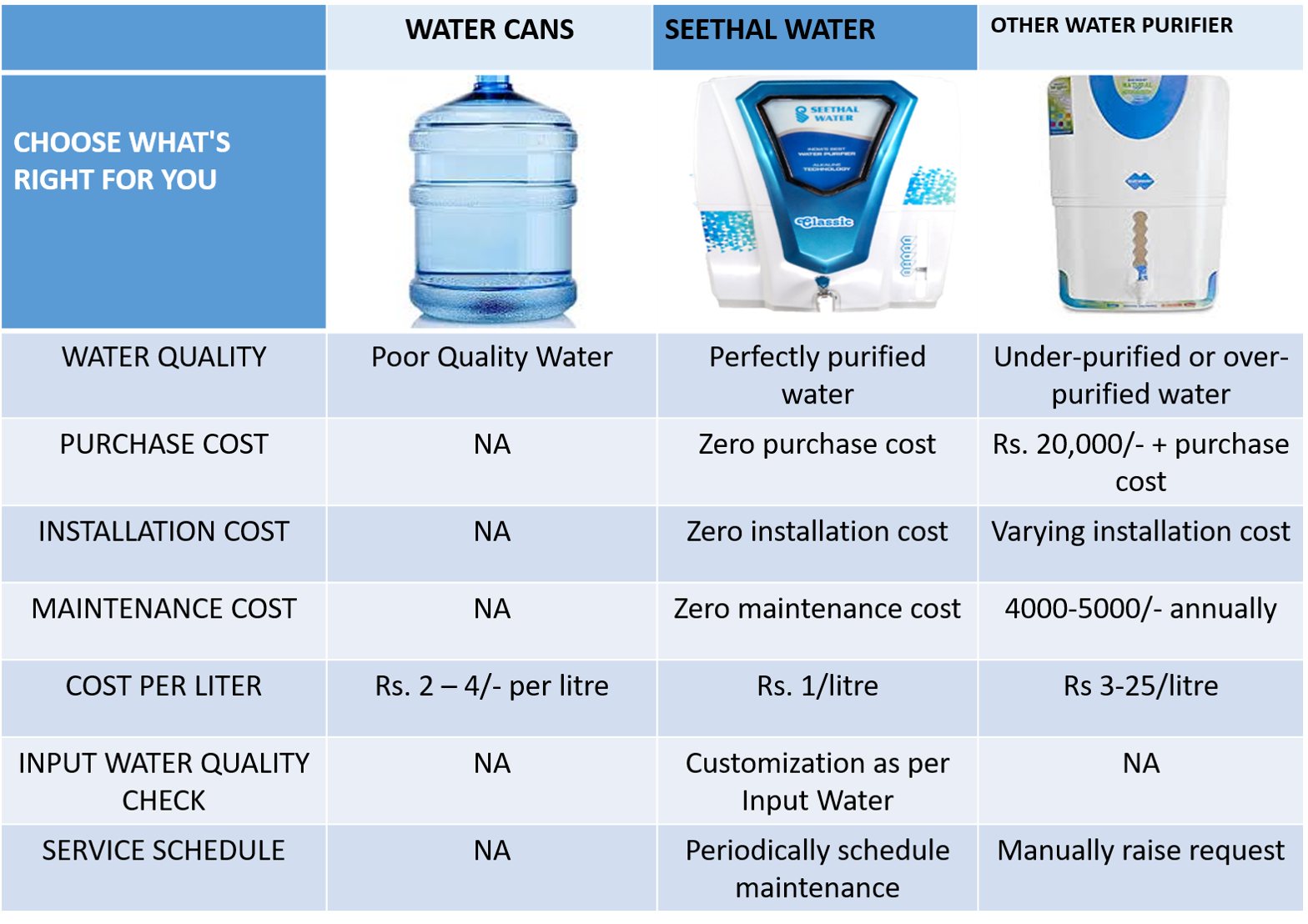 "I'm very impressed with the customer service and the quality of the product from Seethal Water Purifier. They answered all my questions and helped me choose the right purifier for my home. The water now tastes fantastic, and I feel much better about the safety of my family."